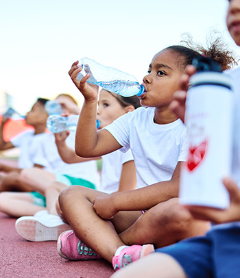 - Provide healthy alternatives. Be sure your kids have healthy things to drink around the house, at meal time, for school, and during sports and other activities. Water is the healthiest way to rehydrate for most youth physical activity, as typical children’s sports rarely result in significant electrolyte loss. For prolonged, intense athletic activity, sports drinks containing carbohydrates and electrolytes may be beneficial. The American Academy of Pediatrics also provides a recipe for homemade sports drinks (one-third cup of fruit juice, two-thirds cup of water, and a dash of salt) as an alternative to commercial products.